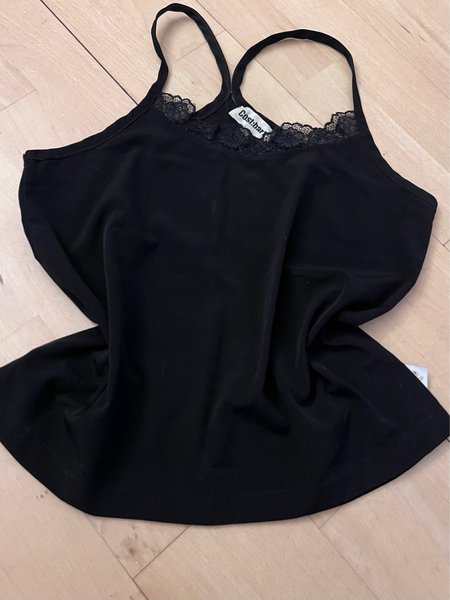 Sort top med tynde stropper og blondekant. Perfekt til sommeren