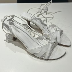 Festlig jumpsuit i en ljus nyans med subtil glans. Jumpsuiten har en smickrande passform med vida ben och en överdel dekorerad med volanger. Perfekt för speciella tillfällen.