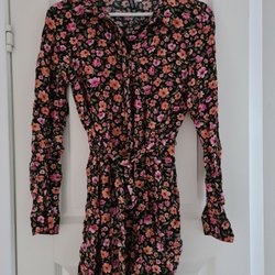 Svart jumpsuit/findress med korta puffärmar i prickigt tyll. Jumpsuiten har resår i midjan och vida ben. Perfekt till festligheter! Från rökfritt hem, katt finns i hemmet.