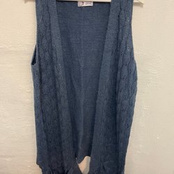 Mörkblå jeansväst med knäppning framtill och två fickor. Perfekt för att skapa en avslappnad men stilfull look.
