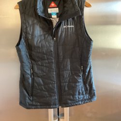 Brun, ärmlös fuskpälsjacka med huva. Jackan har fickor och knäpps med knappar. Den har även dragsko i midjan baktill för justering.