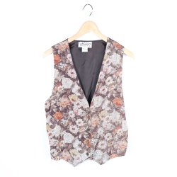 Väst med ett detaljerat blommigt mönster i olika nyanser. Västen har knappar framtill och en klassisk V-ringning.