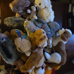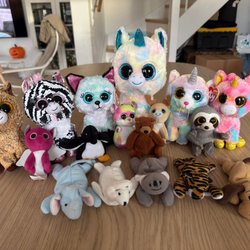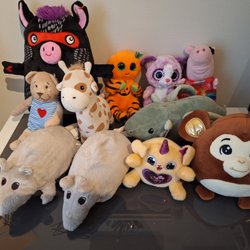 En varierad samling av gosedjur och mjuka leksaker, 13 styckna. Är begagnade men är fortfarande bra. Fråga gärna om du har funderingar!