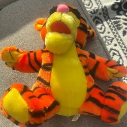 Ett mjukt Tigger gosedjur. Tillverkad av polyesterfiber och plastpellets.