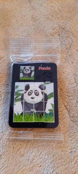 Ett litet skjutpussel med motiv av en panda. Perfekt för resan eller som en rolig liten utmaning.