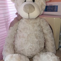 Vändbart gosedjur. Den ena sidan är rund och lila/vit. Den andra är en lila katt med ett silverfärgat horn.