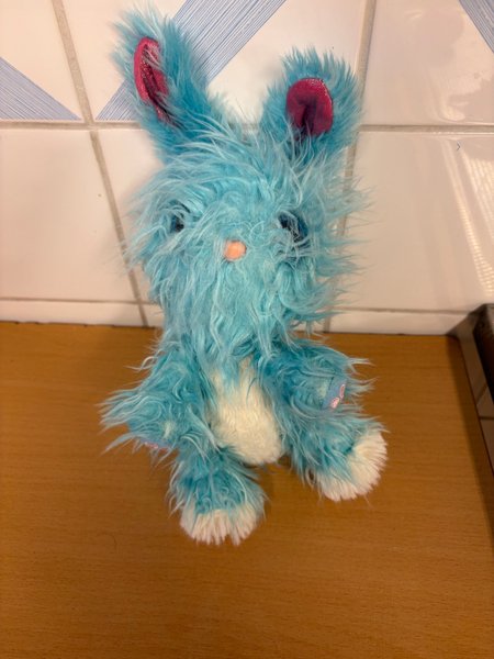 Ett mjukt och kramvänligt blått kaningosedjur. Perfekt för barn.