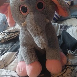 Mjukdjur i form av en ko. Vit med svarta fläckar och rosa mule, öron och hovar. Mjuk och gosig.