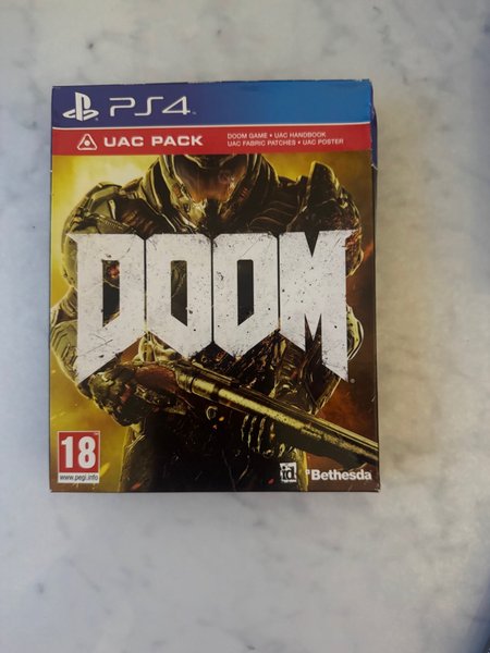 Säljer Doom UAC Pack till Playstation 4. Innehåller spelet Doom, UAC Handbook, UAC Fabric Patches och UAC Poster.
