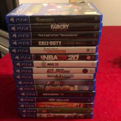 Samling av PS4 spel. Inkluderar titlar som Red Dead Redemption II, Nier Automata, The Witcher 3: Wild Hunt, Call of Duty och många fler.