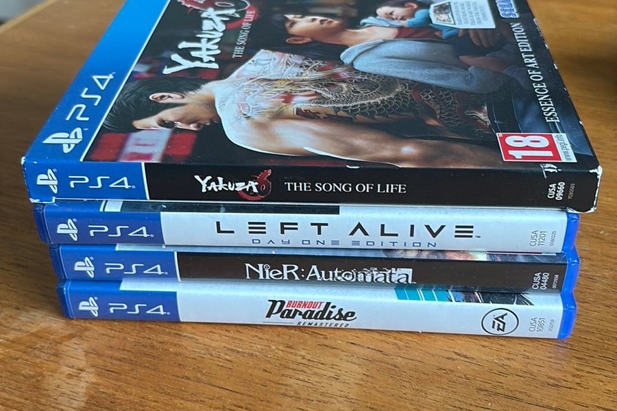 Inkluderar: Yakuza 6 The Song of Life Essence of Art Edition, Left Alive Day One Edition, Nier Automata och Burnout Paradise Remastered.