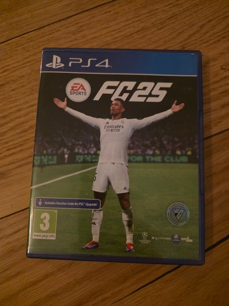 Säljer FC 25 till PS4. Spelet inkluderar en voucher-kod för uppgradering till PS5.