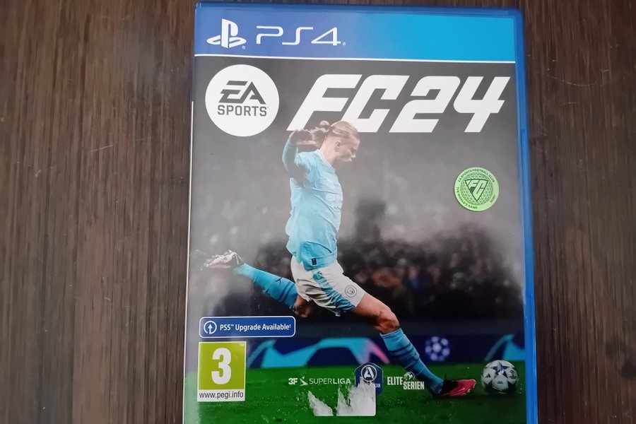 EA Sports FC 24 för PlayStation 4. Spelet har en PEGI-åldersgräns på 3 år. PS5-uppgradering är tillgänglig.