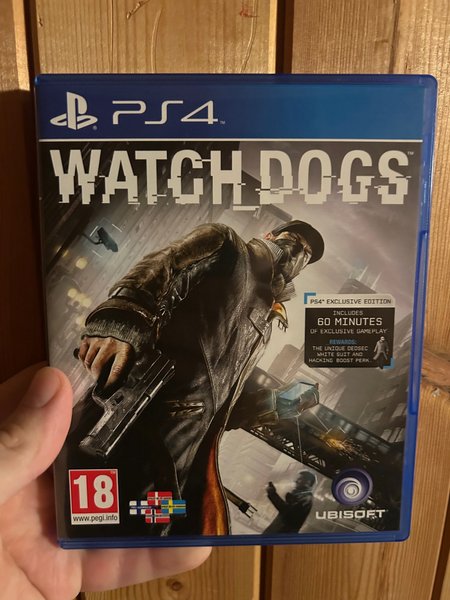 Watch Dogs till PS4. PS4 Exclusive Edition inkluderar 60 minuter exklusivt gameplay samt belöningar: The Unique DedSec White Suit och Hacking Boost Perk. Spelet har en åldersgräns på 18 år enligt PEGI.
