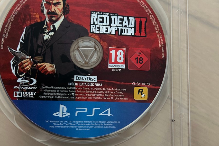 Red Dead Redemption 2 för PlayStation 4. Spelet är utvecklat av Rockstar Games och publicerat av Take-Two Interactive. Märkt med PEGI 18. Testkört å fint skick. Endast skivan i tomt fodral.