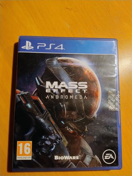 Mass Effect Andromeda til PlayStation 4. Spillet er udviklet af BioWare og udgivet af EA. Aldersgrænse på 16 år ifølge PEGI.