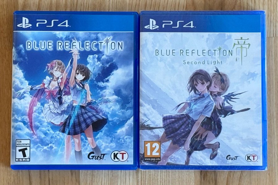 To PlayStation 4-spil: Blue Reflection og Blue Reflection: Second Light. Begge spil er i deres originale æsker.