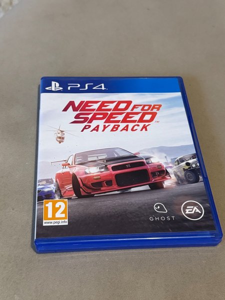 Need for Speed Payback till PS4. Spelet är utvecklat av Ghost Games och utgivet av Electronic Arts. Spelet har en åldersgräns på 12 år enligt PEGI.
