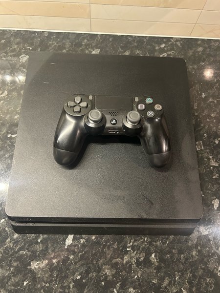 Playstation 4 med en handkontroll. Defekt cd-läsare