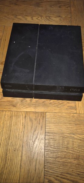 En svart Sony PlayStation 4-konsol. Utan tillbehör! Har ej sladdar till det så inte kunnat speltstad men det startar som det ska med ström