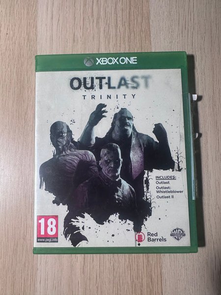 Outlast Trinity till Xbox One. Spelet inkluderar Outlast, Outlast: Whistleblower och Outlast II.