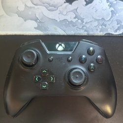 Razer Xbox-kontroll i svart färg. Kontrollen har de klassiska Xbox-knapparna (A, B, X, Y) samt en D-pad med pilar. Den har även två analoga spakar och en Xbox-logotyp i mitten.