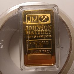 Fyra Credit Suisse guldtackor, var och en väger 1 uns och består av 999,9 finguld. En av tackorna har serienummer 372322.