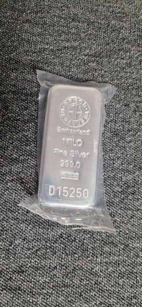 1 Kilo Fine Silver 999.0 från Argor Heraeus, Switzerland. Serienummer D15250.