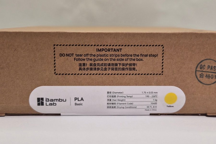 Bambu Lab PLA Basic filament i färgen gul.