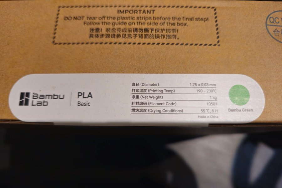 Filamentet har en diameter på 1.75 ± 0.03 mm och en nettovikt på 1 kg.
