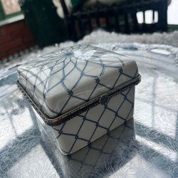 Silverfärgad bricka med kottdekor och monogram