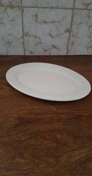 Ett vitt avlångt fat. Fatet är lämpligt för servering av olika rätter. 30,5x20,5