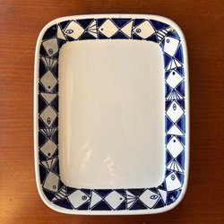Blå ugnsform. Jag tror att det är Rörstrand,men är inte säker då det saknas stämpel.