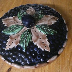 Pajform med lock. Locket är dekorerat med kantarellmotiv. Den har ett litet nagg på insidan av locket och ett på ovansidan men i övrigt i mycket gott skick och inget man tänker på.