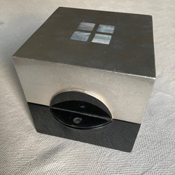 En elegant förvaringslåda med spegelbotten och glasväggar. Locket är ribbat och fästs med en liten kedja.