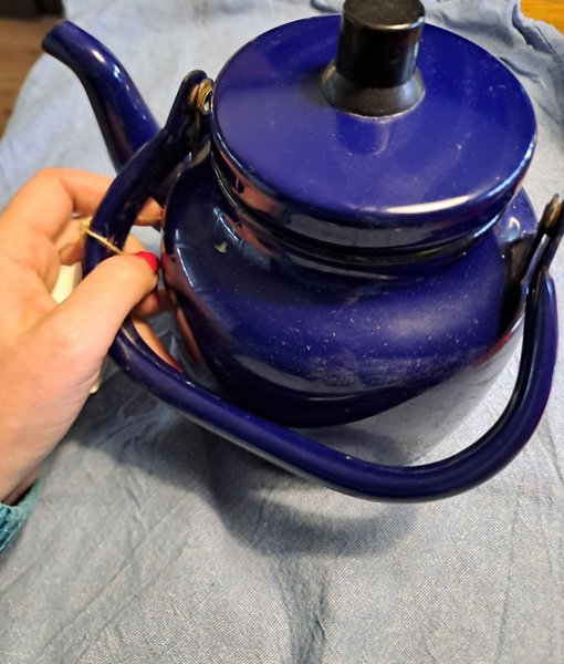 Blå emaljerad tekanna
