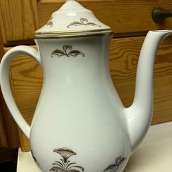 Vit kanna med blommönster och guldkant. Märkt Made in Czechoslovakia undertill.