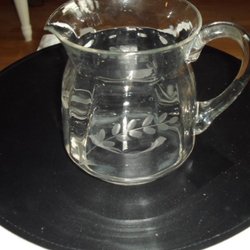 En glaskanna, ha ett pyttelitet nagg i kanten men den syns inte eller påverkar funktionen.