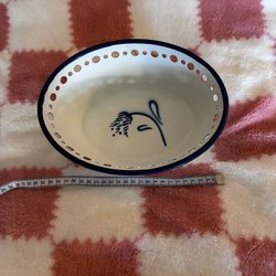 En blå skål. 15cm i diameter och 8cm hög. Passar även som ljushållare till kubbljus.