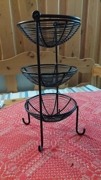 En praktisk fruktkorg i metall med tre våningar. Perfekt för att förvara frukt och grönsaker.