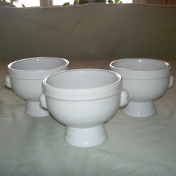 3 st. soppskålar/skålar, märkta Chilli, svarta med vitt och svart mönster, höjd 9,5 cm, diameter 15 cm, titta noga på bilderna innan bud