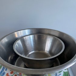 Rostfri bunke med handtag 15 lit. Lite fläckar här å där men har endast andvänst i köksmiljö höjd 28cm