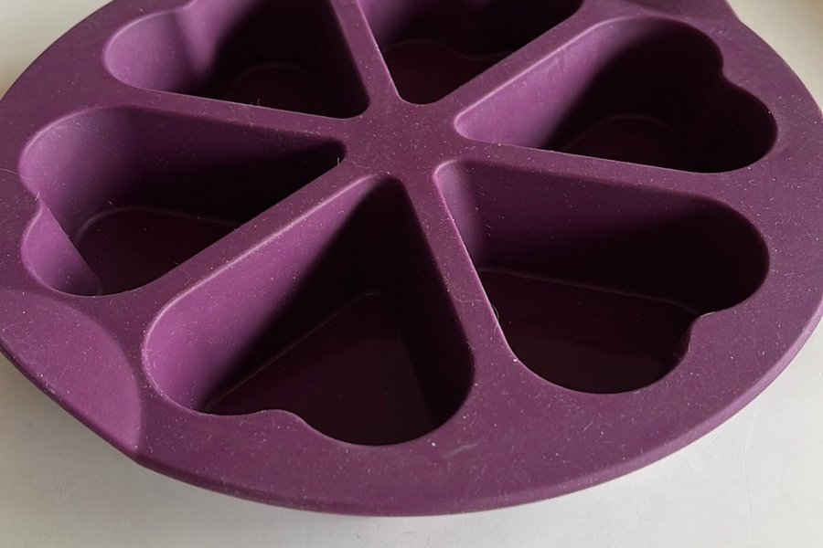 Tupperware ny silikonform med sex hjärtformade fördjupningar, perfekt för bakning eller frysning. Jag skickar i slutet på veckan
