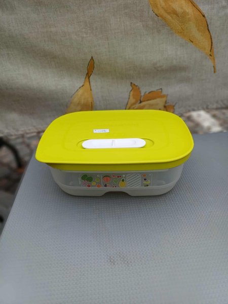 Förvaring för att hålla grönsakerna fräscha längre i kylskåpet 0,8 liter, 19x14 cm och 7 cm hög. Locket har en ventil som hjälper till att reglera fuktigheten i burken. Den är ny och oanvänd.