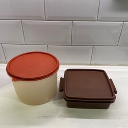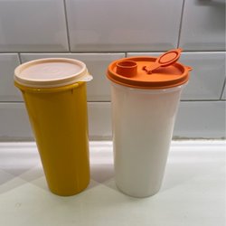Två stycken cylinderburkar från Tupperware.