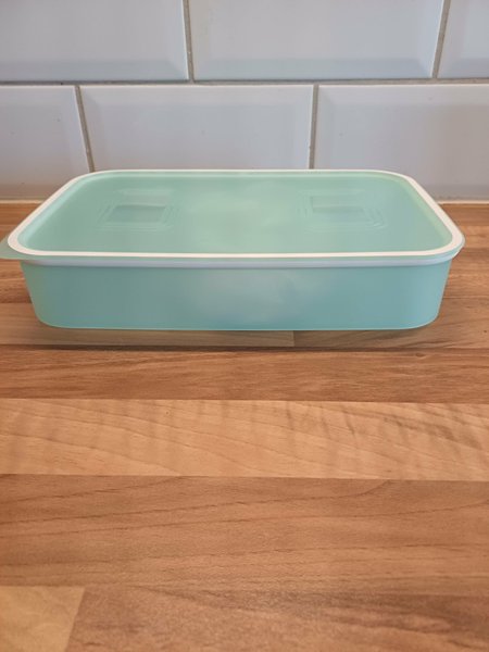 Optimumburk 1,1 liter, 25x16,5 cm och 5 cm hög. Burken har aromtätt lock och är ny och oanvänd.