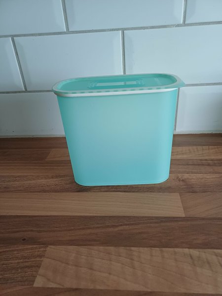 Optimumburk 1,25 liter, 17x8,5 cm och 15 cm hög. Burken har aromtätt lock och är ny och oanvänd.