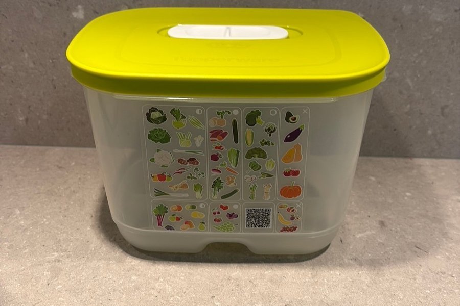 Förvaringsbehållare från Tupperware för kylskåp. Håller grönsaker fräscha. Rymmer 1,8L