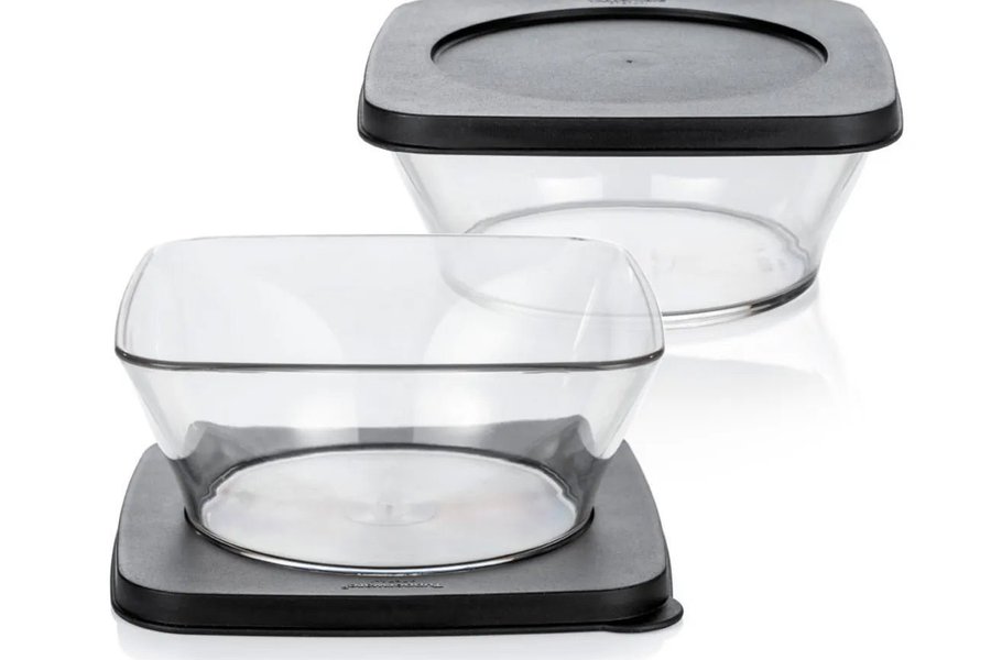 Två skålar från Tupperware med tillhörande lock.