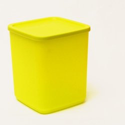 Behållaren stängs med ett tryck på mitten av locket. Locket har , på ena sidan, en lite bredare kant för att det skall gå enkelt att öppna behållaren.